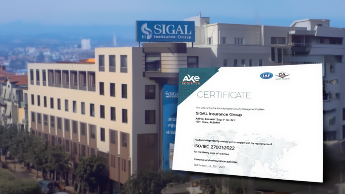 SIGAL Insurance Group është ricertifikuar me standardin ndërkombëtar ISO 27001, duke konfirmuar edhe një herë pozicionin e saj si një nga kompanitë më të sigurta në rajon për menaxhimin e sigurisë së informacionit.