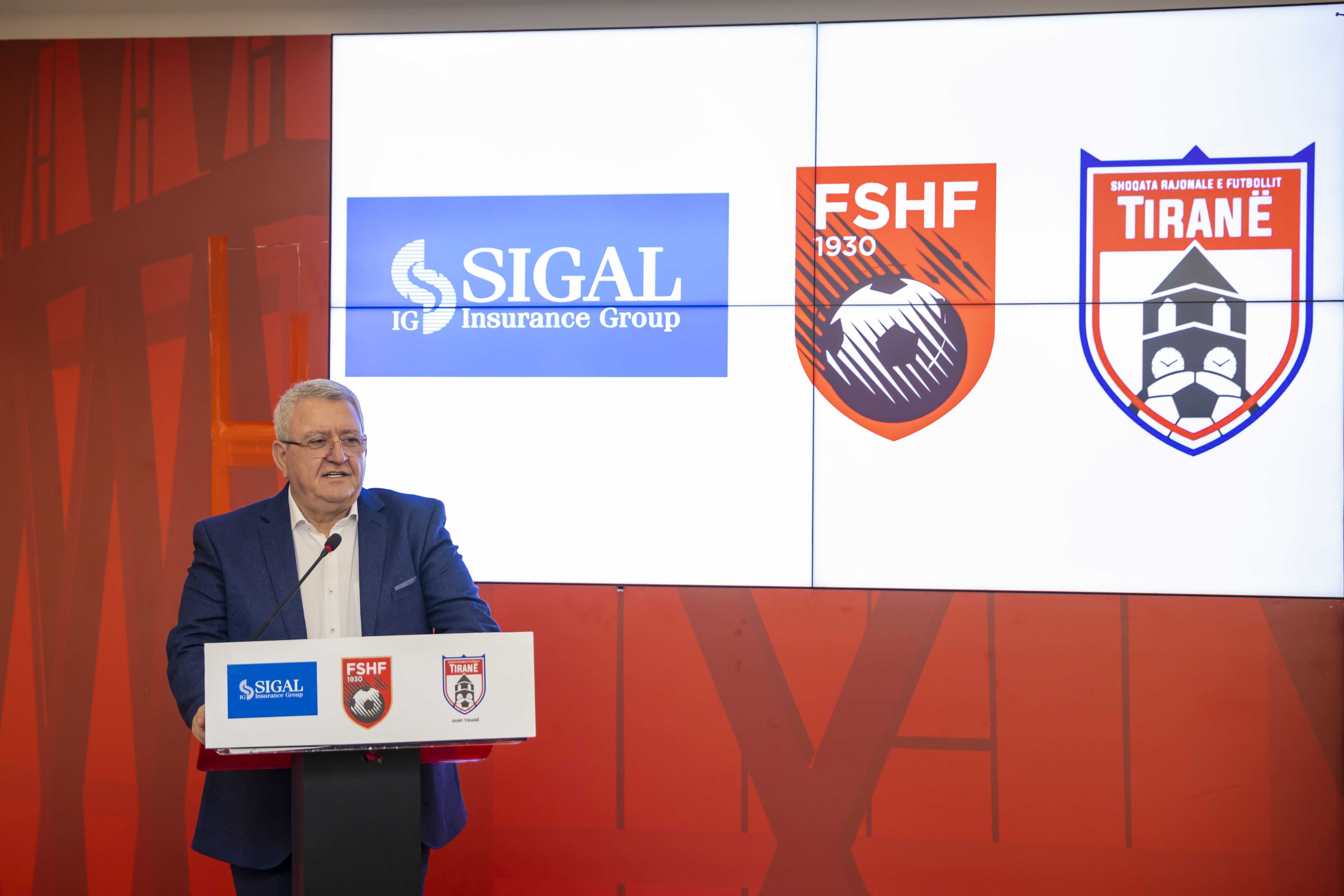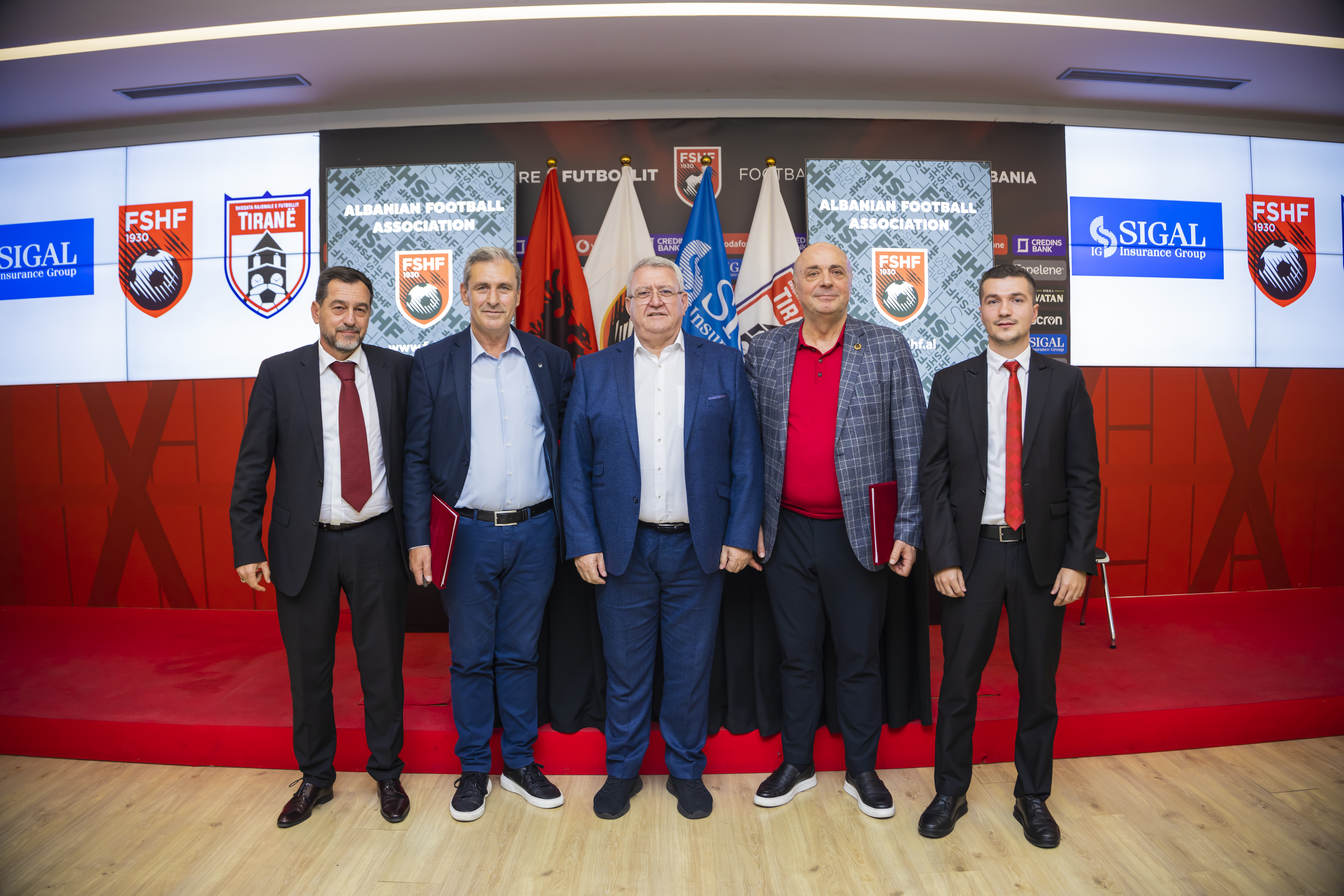 Presidenti i SIGAL Insurance Group, z. Avni Ponari, dhe kryetari i Shoqatës Rajonale të Futbollit Tiranë, z. Krenar Alimehmeti, nënshkruan një marrëveshje njëvjeçare bashkëpunimi në mjediset e Federatës Shqiptare të Futbollit.
